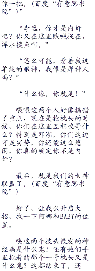 童悠的绝对冷静在这个时候发挥了巨大的作用,这就像是一场足球比赛一样,传球肯定比突破要快,于是赵俪颖的三个枕头在空中划过一道优美的弧线,全都落到了童悠的手中。