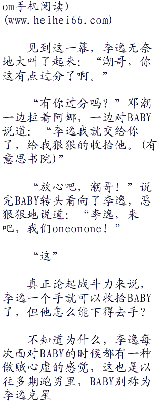 面对baby这理直气壮地回答,李逸还能说什么,只能默默的蹲在一边画圈圈去了。