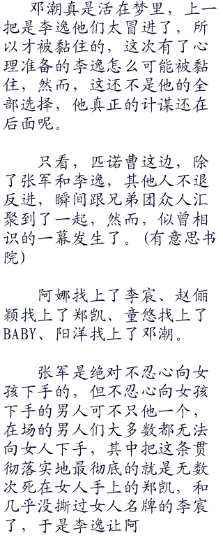 “哼某人还说自己算无遗策呢,现在看来,洒洒水啦”baby这句话里的某人就不用说了吧,李逸再次躺枪。