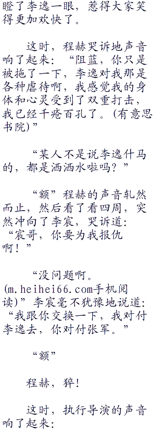 “啊!啊!啊!救命啊!要死人了!”看程赫叫得这么凄惨,李逸真不好意思下手了。