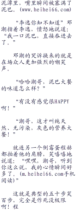 邓潮和程赫起身,两人同时往外吐着泥巴,脸部更是看不出丝毫原本的样子了。