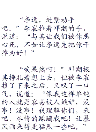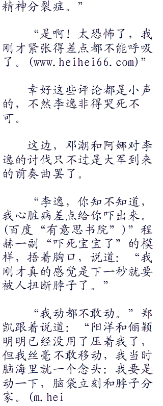 李逸故意在“死”字上面加重了咬音,整个现场的气愤瞬间凝聚了几分,baby更是下意识地大吼道:“不要!”