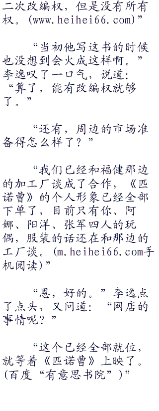 “彼此彼此。”李逸笑着拱了拱手,说道:“对了,我叫你去买《鬼吹灯》和《盗墓笔记》的版权,你搞定了没有。”