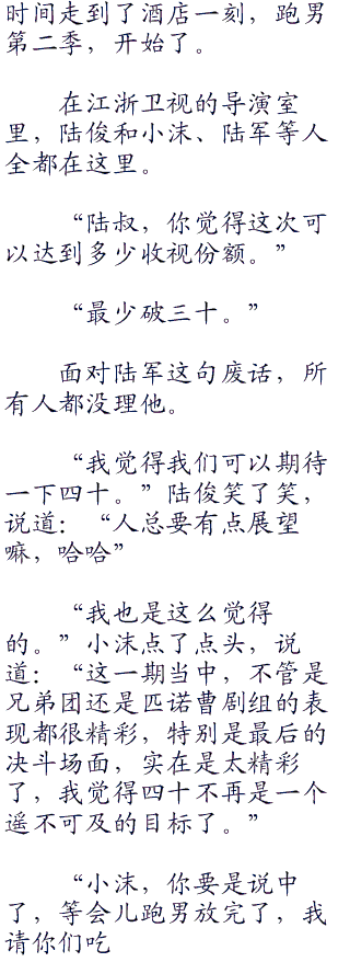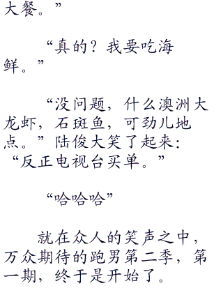 两个人一转头,就看到屏幕之上正在播放《奔跑吧,兄弟》的主题曲,伴随着李逸和邓潮的歌声,第一季的种种精彩瞬间出现在了屏幕之上,两人相似一笑,知道,第二季即将开始了。
