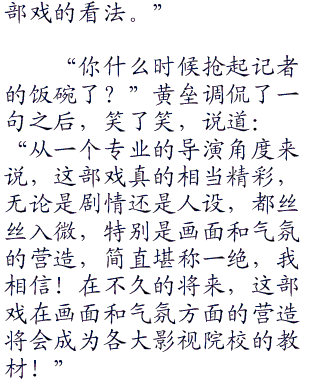 “这比起革命前辈来说算什么,那个时候打赢战争就是他们身为战士的一切,而现在,拍摄一部好作品就是我身为导演的全部!”