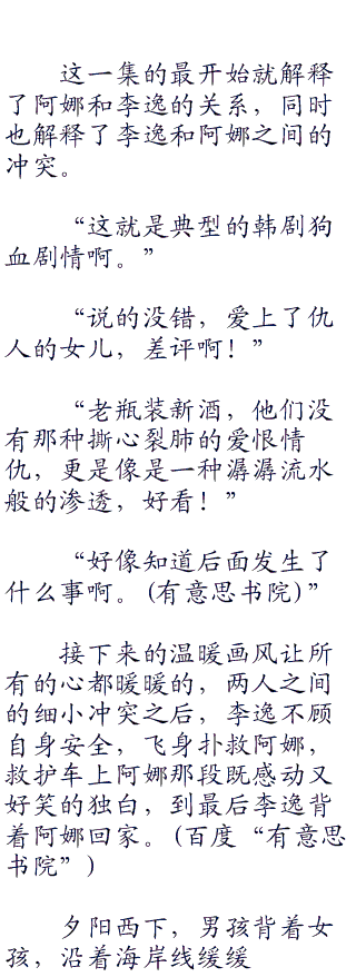 “虽然第一集里面李逸和阿娜的表现都不算精彩,但杨小幂的表现真是吓了我一跳,完全打破了我对她没有演技的看法啊。”