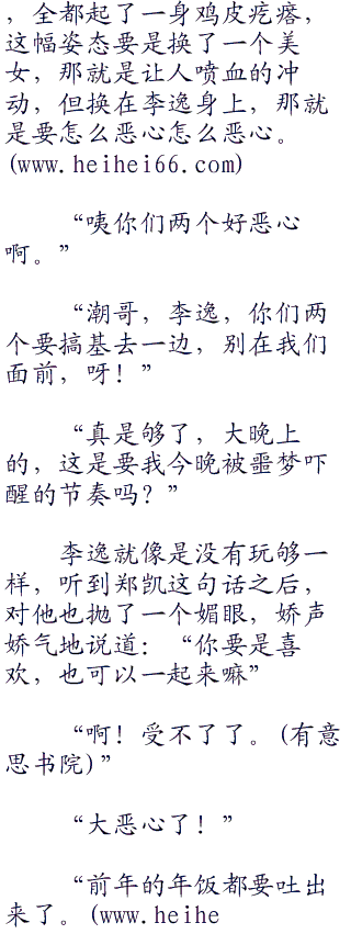 “吓!你真想对我做什么啊?”李逸听到李宸的这句话,夸张地大叫了起来:“不要啊,你们这群畜生。”