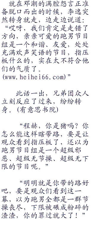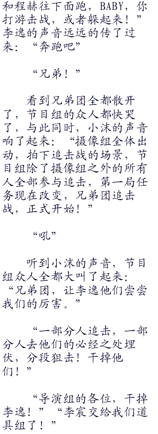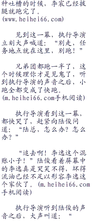 很显然,李逸是真的知道了,只见他对着镜头,慢慢说道:“还有第四种可能,在我们即将要行走的路上,嘉宾已经埋伏在了哪里,但我们七人当中此时并没有内奸,真正的内奸肯定是在我们做任何的过程当中才会出现!”