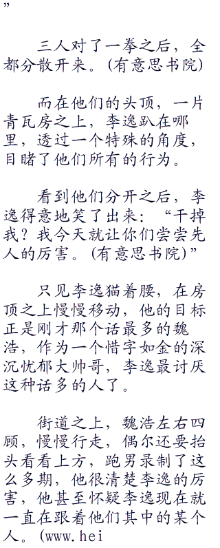 “我哪儿知道。”被称为魏浩的人摇了摇头,望着空无一人的巷子,说道:“他是不是藏到哪一家里面去了?”