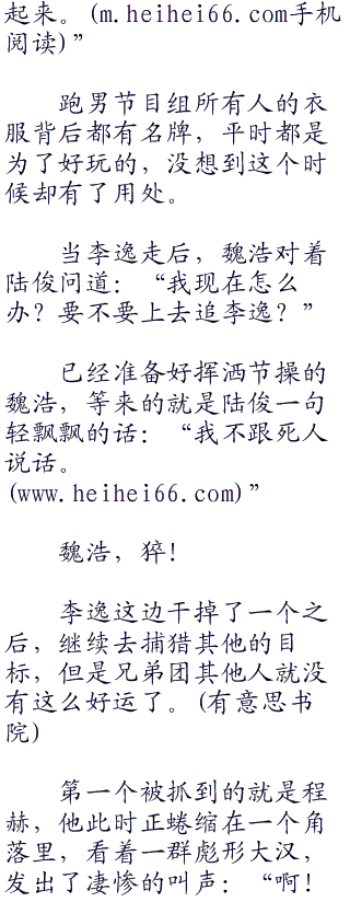 在李逸的身后,三个副导演穷追不舍,跑男节目组的人进入剧组之前都有进行一段时间军事化的训练,其体能和身体素质都是远超普通人的,这也是他们为什么敢夸下海口,抓住兄弟团的原因。