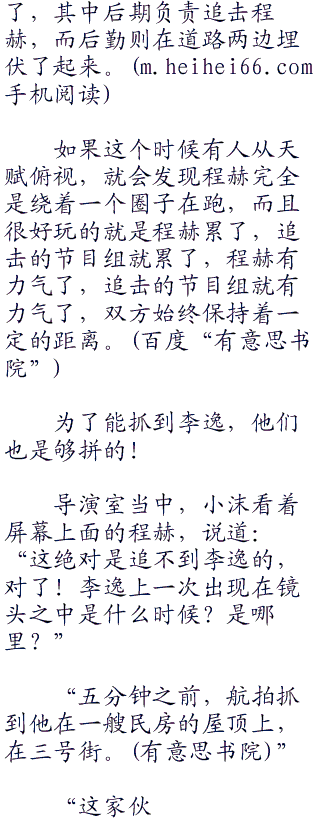 然而,邓潮的声音响起没一会儿,程赫的声音就响了起来:“后面好多人追,我也不知道这里是哪里,刚看看到了一块复兴街的牌子,这里应该就是复兴街!”声音同样急促,气喘吁吁地,后面同样是大喊大叫的节目组人员。