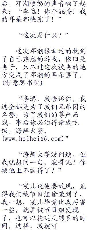 “原文?”邓潮愣了愣,随即说道:“下一站,南城门!我还下一站,天后呢?他们这都是什么鬼?难不成这期的嘉宾是twins?”