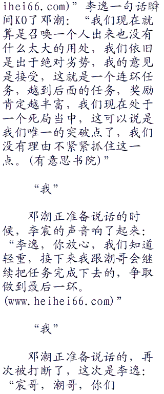 “我说的是原文!”邓潮的这些鬼话李逸一句都不相信,什么东西到了邓潮嘴里转一圈,就彻底变了味道。