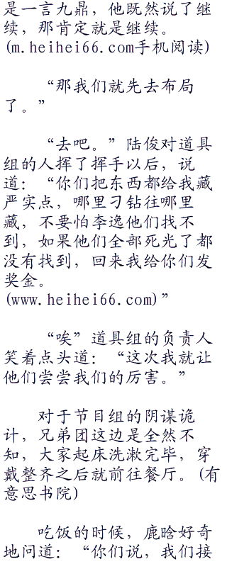 “我不同意。”小沫反驳道:“我们这一期的主题已经发生了变化,既然是跑男节目组大战兄弟团,我们为什么不把这场还没有完的战争进行下去呢?”