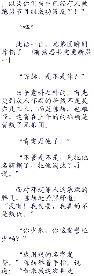 陈赫紧跟着第二个打断了鹿晗:“别解释了,解释就是掩饰,掩饰就是心虚,心虚就是事实。”