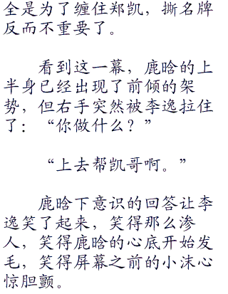 导演室里的小沫看到这一幕,脸色瞬间变了,因为她在李逸的脸上看到了熟悉的微笑,那个被称为“狐狸的微笑”,那个掌握于心,从来没有失败过的微笑。