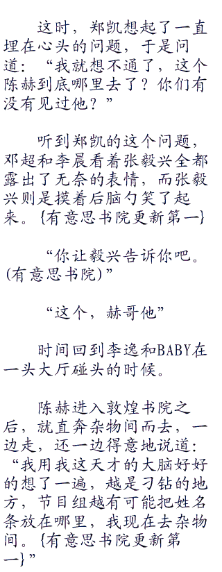 “我们之前到处找姓名条都找不到的时候,凯哥抱怨了一句:半根鸡毛都没有找到,节目组不会就是纯粹想耍我们的吧?”