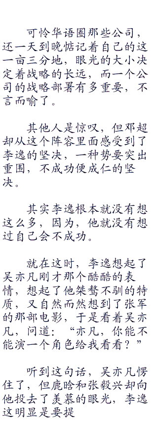 “我倒没什么,听了李逸意见之后,公司在帮我看看电影这边有没有什么机会呢。”王祖蓝是真把李逸的话听进去了,当晚就打电话回公司,希望可以在大荧幕上面发展。