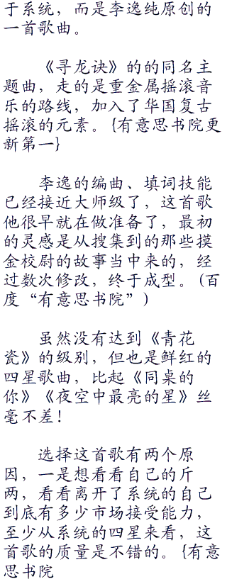 搞定了rio这边,李逸就要好好钻研一下自己的歌曲了。