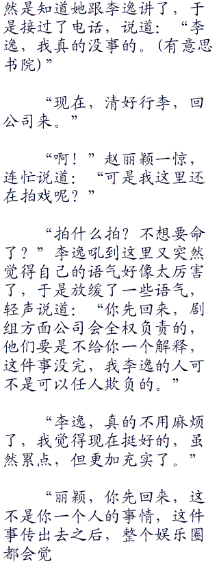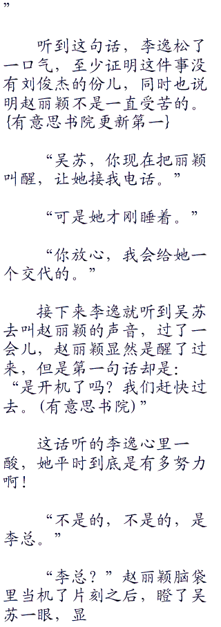 挂了苏默电话之后,李逸立刻就拨通了赵丽颖的电话。