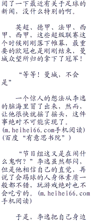得!此地无银三百两,电话挂这么快,李逸敢肯定,自己百分之八十猜中了,就算不是足球为主题,那这些游戏环节里面肯定也有足球。