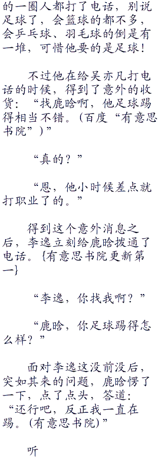 看见众人纷纷摇头,陆俊摸了摸后脑勺自言自语道:“那就奇怪了,李逸怎么问我是不是足球?难道他真是猜的?”
