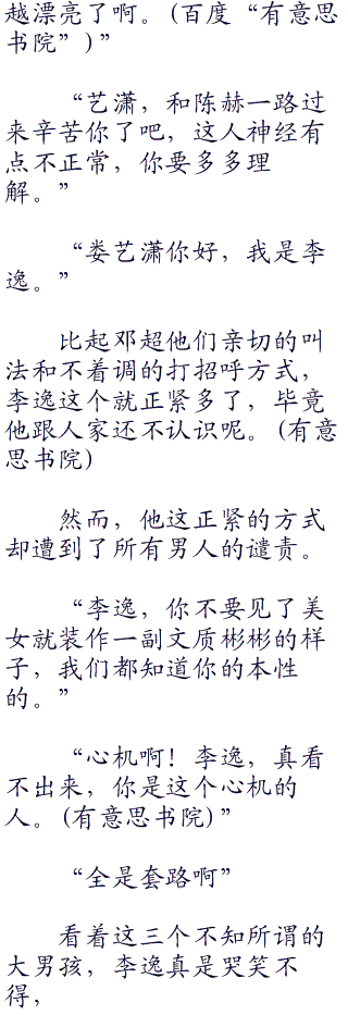 “唉”四个男人看到陈赫之后,赶紧朝他的方向热情地应了上去,陈赫被这热情的样子搞蒙了,正当他以为邓超四人是转性了的时候,只见四人绕过了他,跑到了他身后大美女的面前。