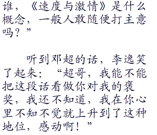 王祖蓝邀请的则是张晋,武打明星,这位和李连杰一样,同样是有真功夫在身的,所以他以来就被众人调侃要跟李逸打一场,但他摇了摇头,表示自己打不过。