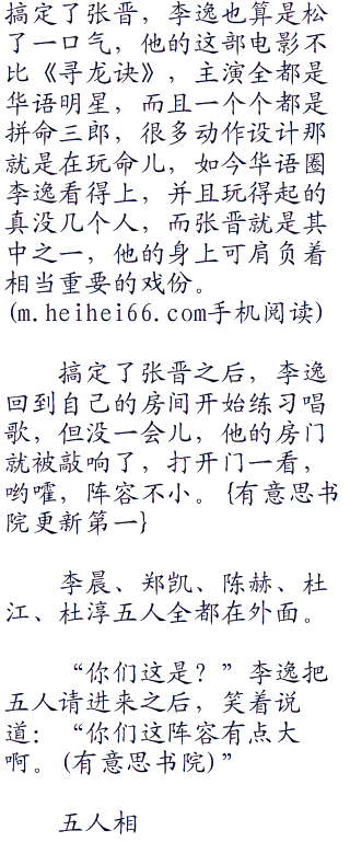 跟邓超贫嘴了两句之后,李逸找到了张晋的房间。
