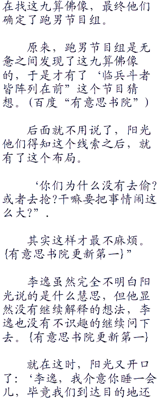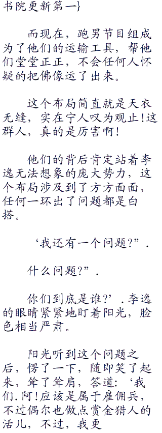 李逸一直很好奇,者甘他们的外号:刺刀、屠夫、秃v,一听就知道不好惹,但阳光这个外号,就太平凡了,而且太不像雇佣兵了,真不知道这个外号是怎么来的。有.意、思、书院