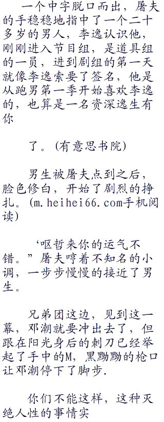 阳光最后一句话是对屠夫说的,说完这句话,屠夫兴奋的大叫了一声之后,开始了慢悠悠的点兵点将.