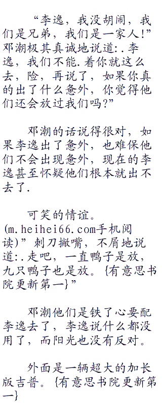 不管他们要做什么,李逸肯定是不会参加的,这就是一群亡命天涯的不法之徒,跟着他们肯定没有什么好事的。