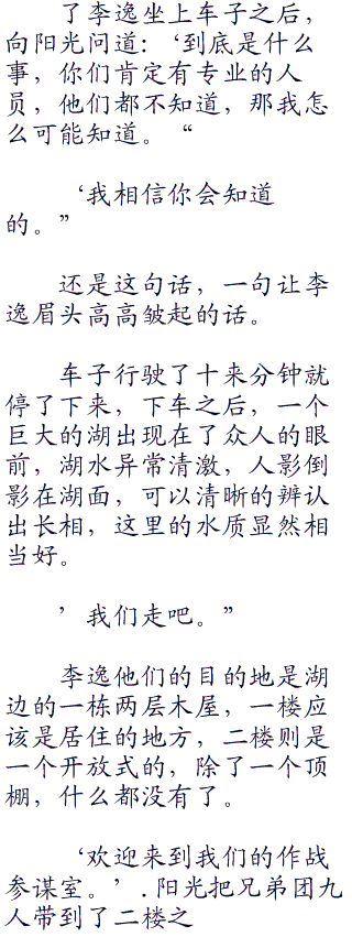 李逸盯着阳光,一字一句地质问道:‘你们到底想做什么?”