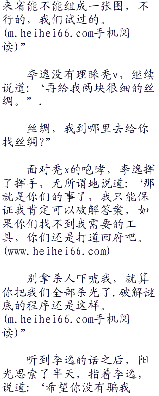 这就是两条线索。’下日光直接答道:.雇主告诉我们宝藏在这里,然后我们来找,就这么简单。