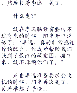&a;#;0k!’.就在阳光倒数到了‘2&a;quot;,已经做好了开枪准备的时候,李逸终于忍受不住了,举起了手,说道:‘我帮你,我帮你。“.