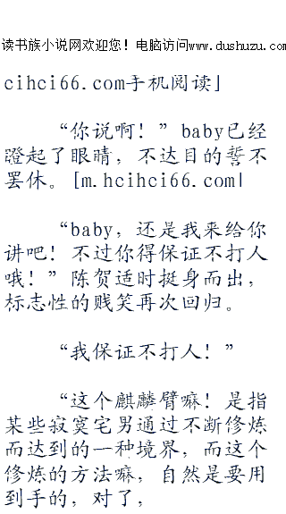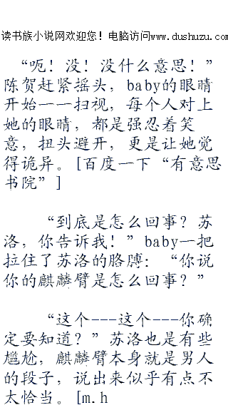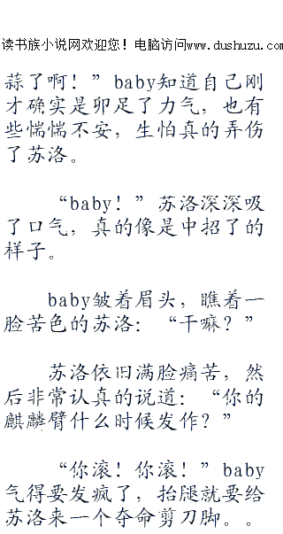 一头雾水的baby根本就不知道麒麟臂有什么典故,依旧担心的看着苏洛,发现苏洛的脸上也开始出现促狭的表情,突然觉得貌似哪里不太对劲。