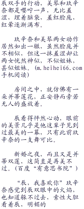 辰心里仿佛有一团火焰在燃烧,而玖辛奈和美琴显然也知道接下来会发生的事情,更是羞涩难耐,盈盈如水的目光根本不敢与辰接触。