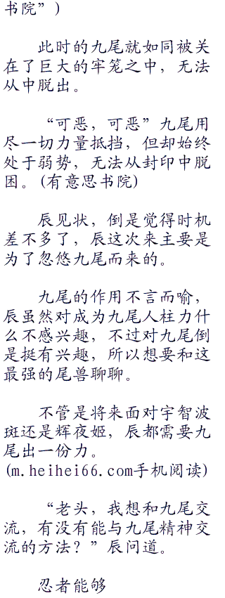 辰心里一动,宇智波斑、千手柱间、漩涡水户,这三人都是与九尾大有渊源的人物啊。