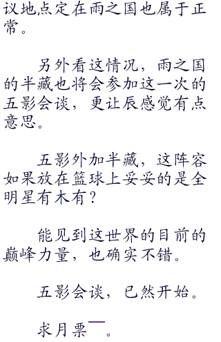 辰与三代离开漩涡一族,四周的警戒和暗部也全都离去,白牙则是到了三代火影的身边,贴身保护着三代。