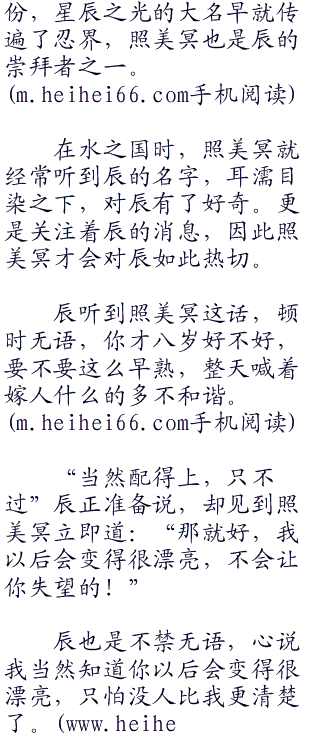 旁边的水门和艾已经是囧然无语,完全说不出话来,两人对视一眼,实在是想不通照美冥怎么就突然看上辰了,这是什么节奏啊