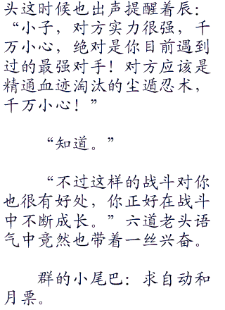艾一脸哀怨的看着辰,辰最后那句话着实也将他打击得不轻。艾摇头叹息道:“辰啊,你这家伙也不至于这样打击我吧,虽然你长得帅是没错”