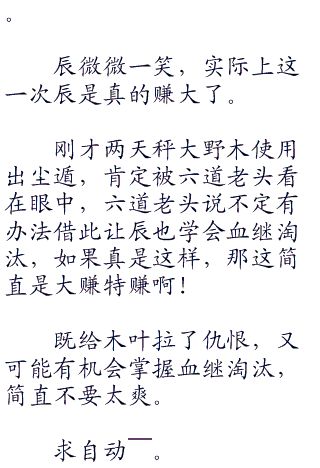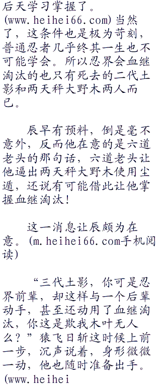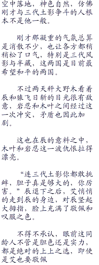 猿飞日斩无愧于他‘忍术博士’的称号,很有经验的判断出血继淘汰的性质,也同时是在提醒着辰。