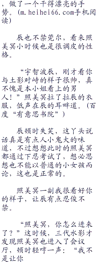 看到这一幕,照美冥忍不住露出笑意,笑容满面,这姑娘似乎唯恐天下不乱,拉了拉辰的手