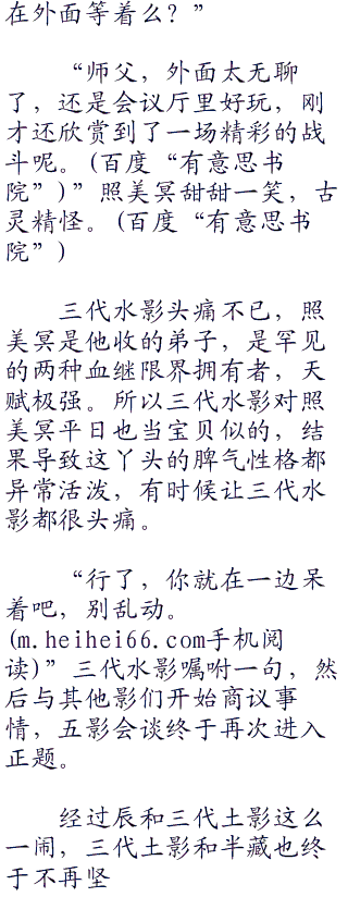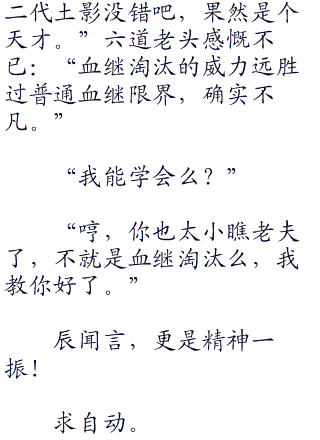 艾自问他也有这样的胆魄,可惜却没有辰那么强的实力,能与三代土影争锋!不过看刚才的架势,三代土影真是强得可怕啊