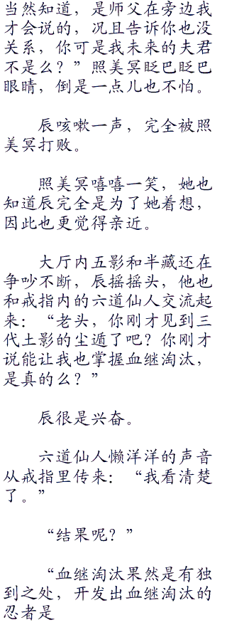 水门也失笑一声:“不过刚才真是解气,特别是看到三代土影脸色铁青的样子”