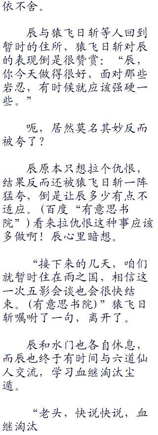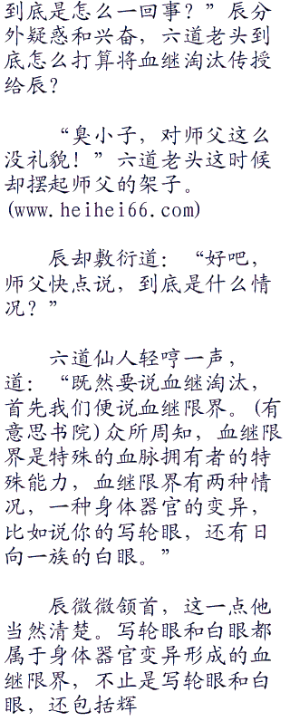 听到六道老头说血继网罗,辰顿时来了兴趣。