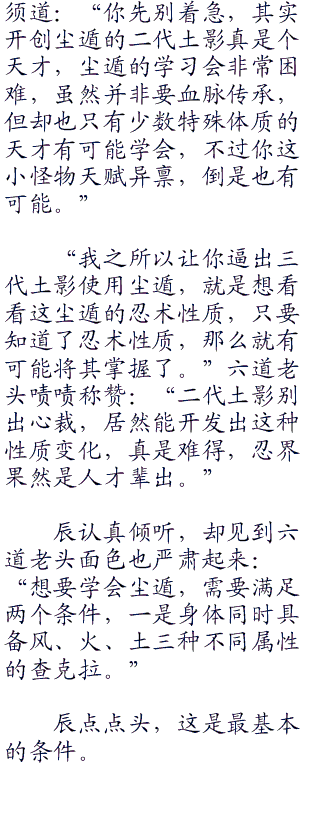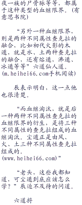 辰一向也是,差点忘了,六道老头虽然因为受伤而实力大损,但眼力和经验却依旧是他。更何况六道老头是忍宗始祖,连血继网罗都精通,更何况是血继淘汰了。