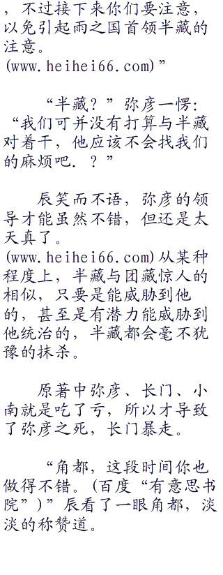 “老师,目前晓的发展已经让我们很惊喜,雨之国内越来越多的人投奔我们,与我们有着相同的理想,能够一起改变这国家!”弥彦有些激动的说道:“我们晓组织发展得迅速,几乎已经遍及了雨之国的各地,虽然远不如半藏那样强,但也已经成长为雨之国一股不可忽视的力量,相信再这样下去,一定会改变这个国家,迎来和平!~”