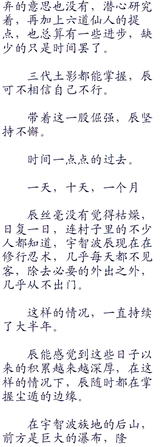 所以辰早就下定决心,要潜心研究忍术,特别是将尘遁掌握,以便此后的行动。