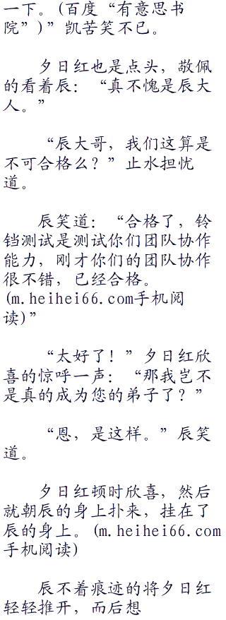 经过简单的一番解释,夕日红三人也才终于从兴奋中平复过来,不过夕日红依旧是小脸红扑扑的看着辰。